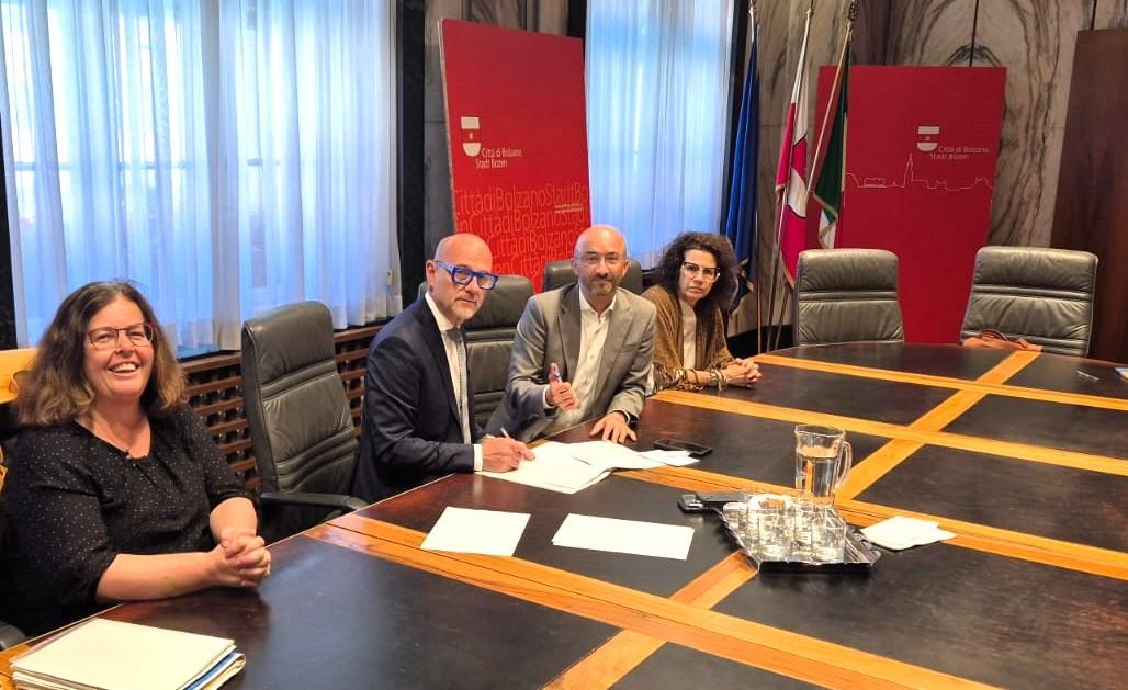 Nella mattina di oggi – venerdì 30 maggio – presso il municipio dell’importante città dell’Alto Adige si sono riunite le principali autorità bolzanine, insieme ad alcuni rappresentanti di Anterselva: c’erano infatti il Sindaco di Bolzano Claudio Corrarati ed il Sindaco di Anterselva Thomas Schuster, così come non sono mancati il Segretario Generale del Comune di Bolzano Antonio Travaglia, la Segretaria Generale del Comune di Anterselva Gabriela Kerschbaumer e la responsabile della Ripartizione Patrimonio e Attività Economiche del Comune di Bolzano Ulrike Pichler.