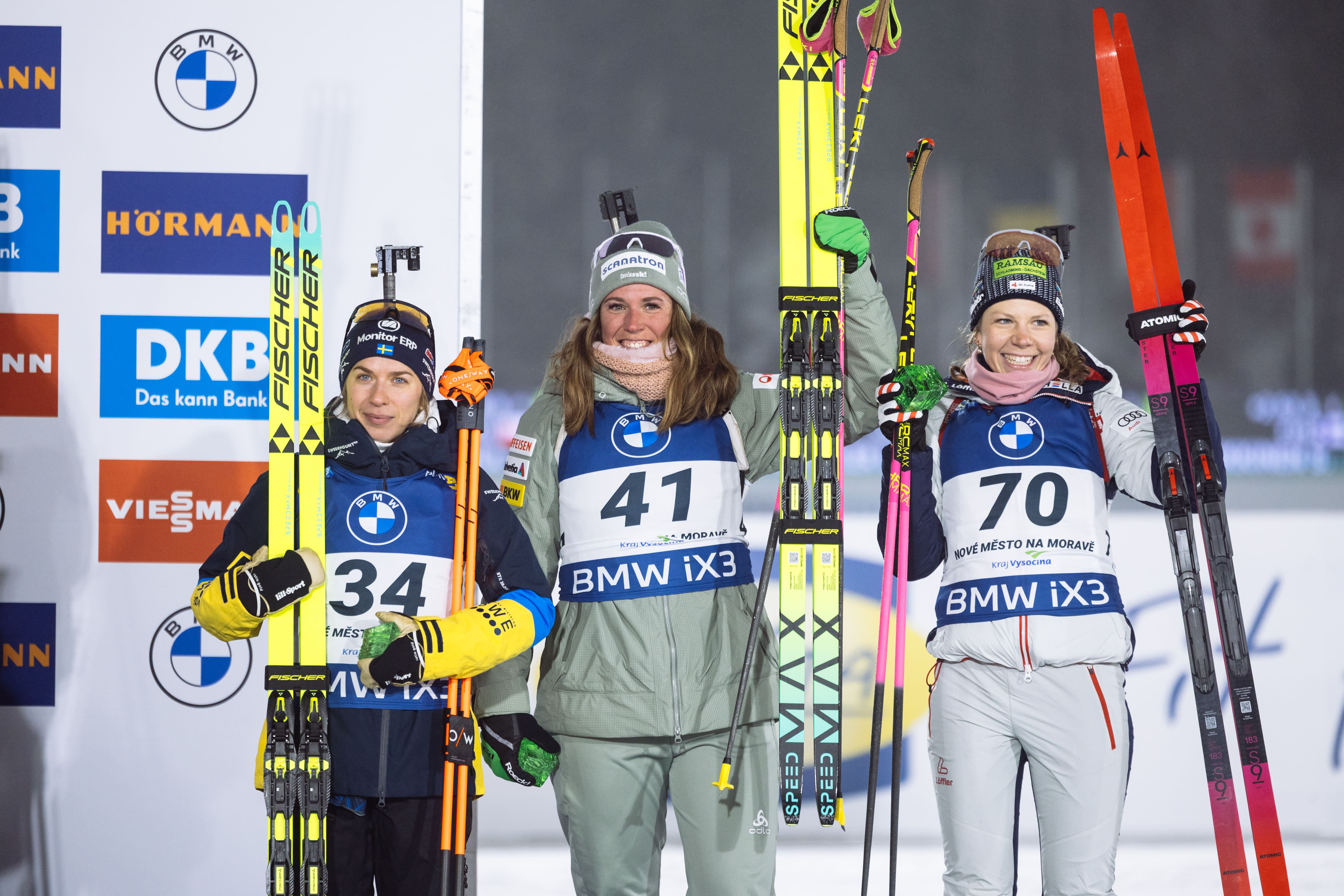 19.750 spettatori hanno riempito gli spalti della Vysočina Arena di Nove Mesto per la short individual femminile. Una gara che ha visto il netto dominio francese, con Justine Braisaz-Bouchet che si è imposta con poco più di un secondo sulla connazionale Jeanmonnot. Terza una Preuss salita di tono.