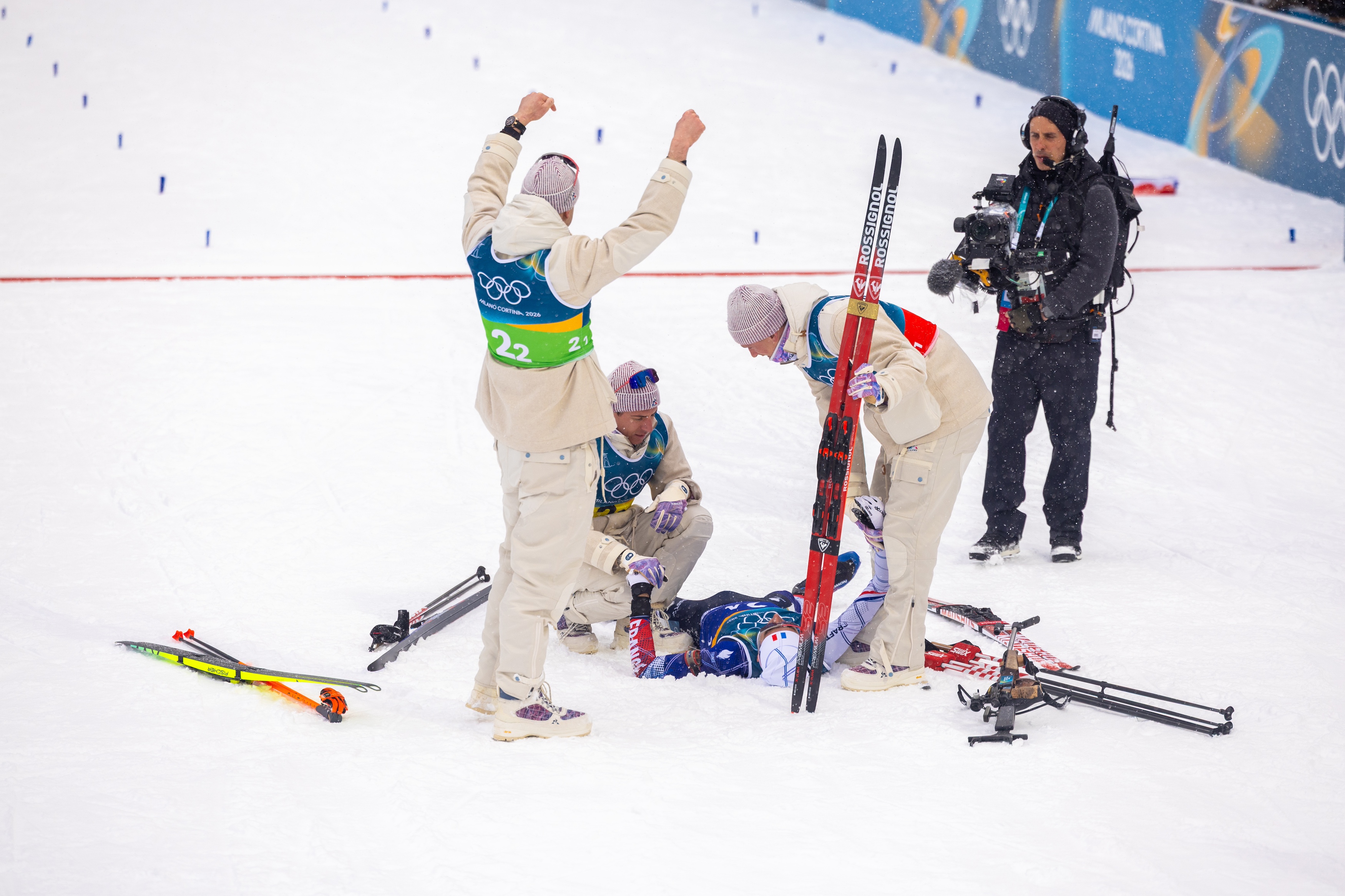 Perrot, dopo essersi difeso da Christiansen nel bosco, allunga sulla salita principale e incrementa il gap, consentendo alla Francia di involarsi verso la quarta medaglia d’Oro nel biathlon in questa rassegna a cinque cerchi di Milano-Cortina 2026. La Francia sfata così il taboo della medaglia d’oro nella gara a squadre maschile, che finora era rimasta a lungo sempre e solo un sogno, come ammesso a fine gara da parte dell’allenatore di tiro dei francesi, Jean Pierre Amat, e che nemmeno dei fuoriclasse come Raphael Poirée e Martin Fourcade erano riusciti a conquistare in passato.
