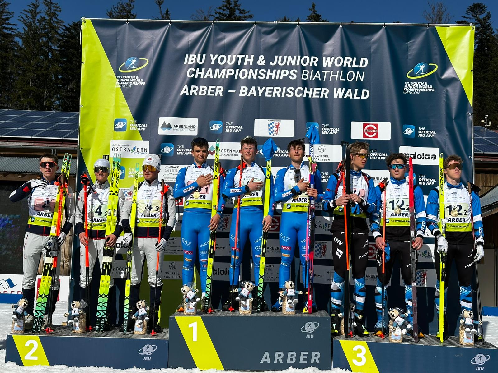 La foresta bavarese di Arber si tinge di Oro e Azzurro nella penultima giornata di gare dei Mondiali Giovanili 2026. Si fa la storia in terra tedesca: mai prima d’ora c’era stato il metallo più pregiato in questo format di gara a livello maschile (bronzo a Otepää nel 2024 con Giordano, Carollo e Cola) mentre le donne (Carpella e le sorella Scattolo) avevano fatto centro nel 2022 a Soldier Hollow. A completare il podio Austria a 20″ e la sorpresa Estonia a 30″.