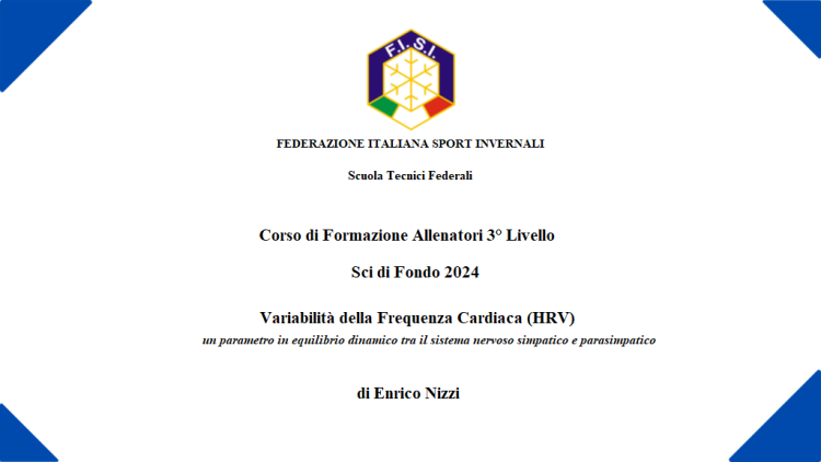 Sci di fondo , Sport&Life Sport&Life – “Variabilità della Frequenza Cardiaca (HRV) un parametro in equilibrio dinamico tra il sistema nervoso simpatico e parasimpatico.”, la tesi di Enrico Nizzi per il corso allenatori di 3° livello Il corso allenatori di terzo livello di sci di fondo che lo scorso 22 settembre a Predazzo ha decretato la promozione di 23 Enrico Nizzi Pubblicato il 4 Novembre 2024